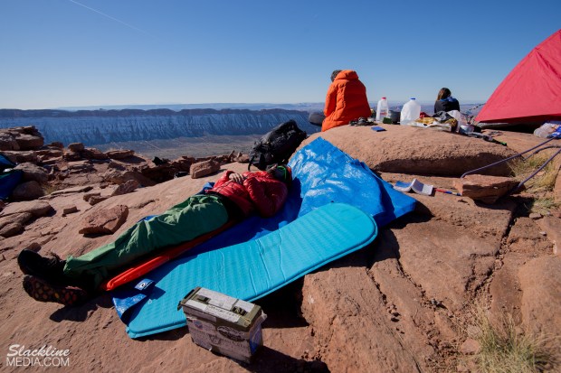 Sleeping on top of Castleton Tower. True commitment to the project ahead.