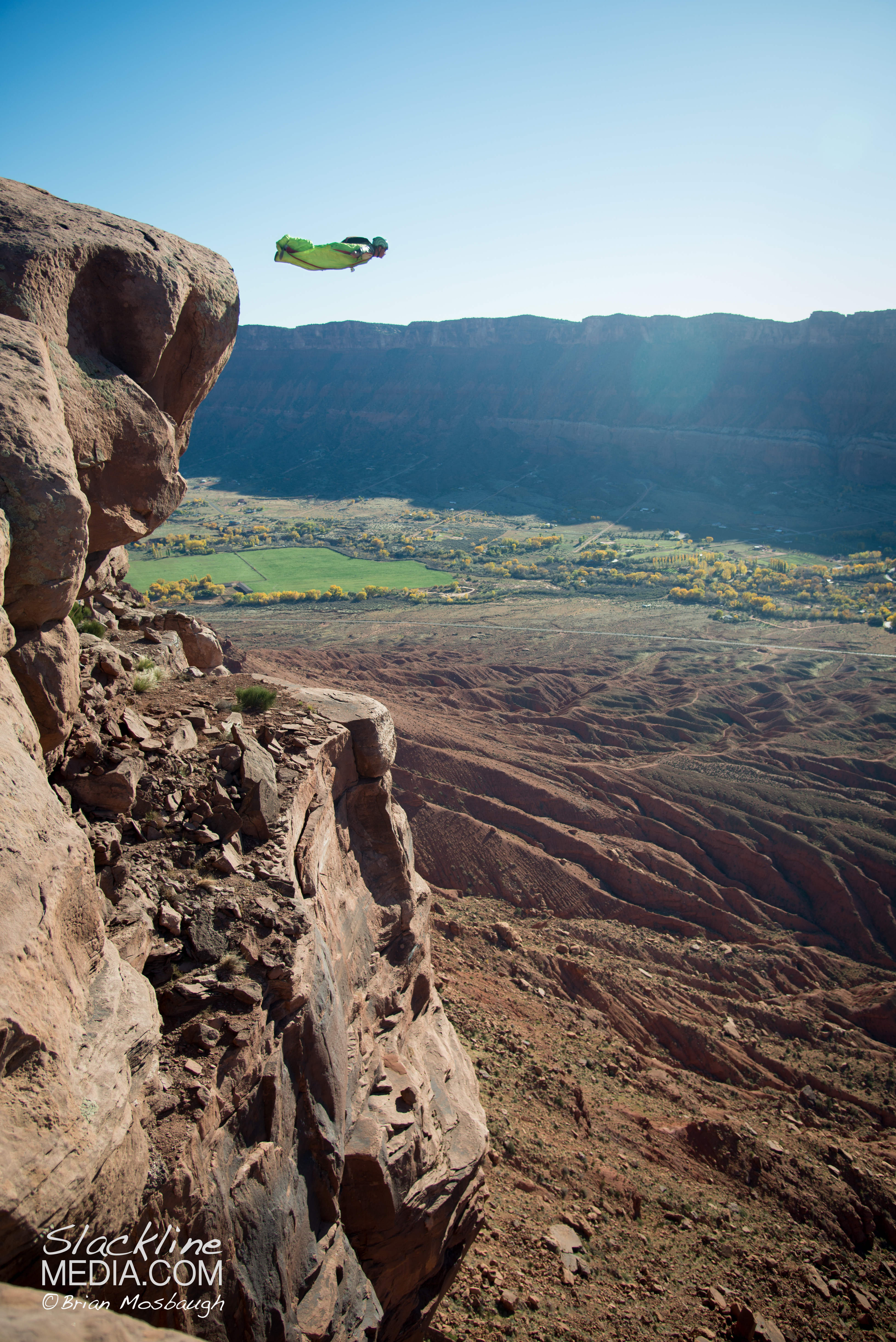 Spread your wings and fly! Richard Webb has been establishing new BASE exits all over Moab for many years now and with the evolution of wing suit technologies he’s been able to approach these notoriously low and committing jumps with a new set of eyes. Mind you Moab is not a “wing suit BASE destination” for the average jumper and only after years of dedicated experience as a professional pilot has he been able to do this safeishly and with a proper understanding of weather conditions and terrain.
