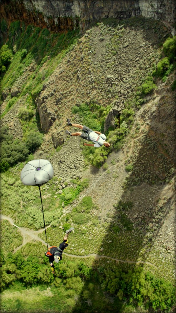Danny Weiland and “Dreamy” Dave rockin’ a sexy 2-way exit from the Perinne Bridge in Twin Falls, ID.